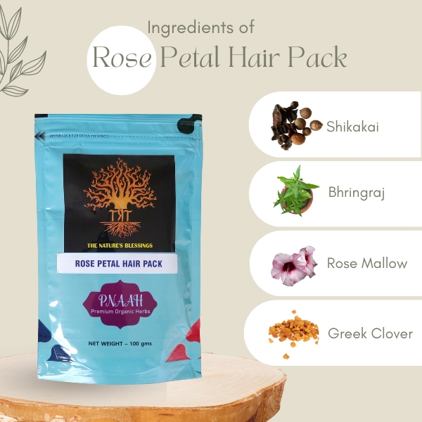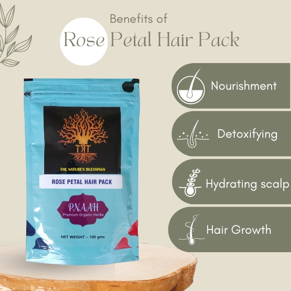 Rose petal hair pack is best for hair nourishment, detoxifying, hydrating scalp and hair, hence improving hair growth. This hair pack helps in removing extra oil and dead skin cells, further providing natural strength and lustrous hair. The vitamin A, B3, C, and E found in rose petals can help promote hair growth and improve hair health. Rose works as an astringent and detoxifying agent, which makes it as an great healer. It cleanses the scalp hence improving the blood flow.